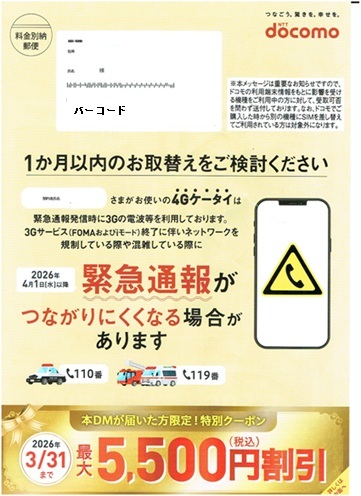 NTTドコモからのお知らせDM(3Gサービス終了)
